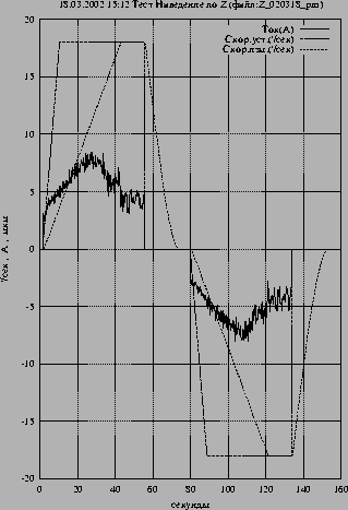 Какие направления желаете: p - движение в плюс m - движение в минус Введите последовательность движений (подряд) [pm]По-умолчанию предлагается сначала разгон каждого привода в положительном направлении, а затем - в отрицательном.